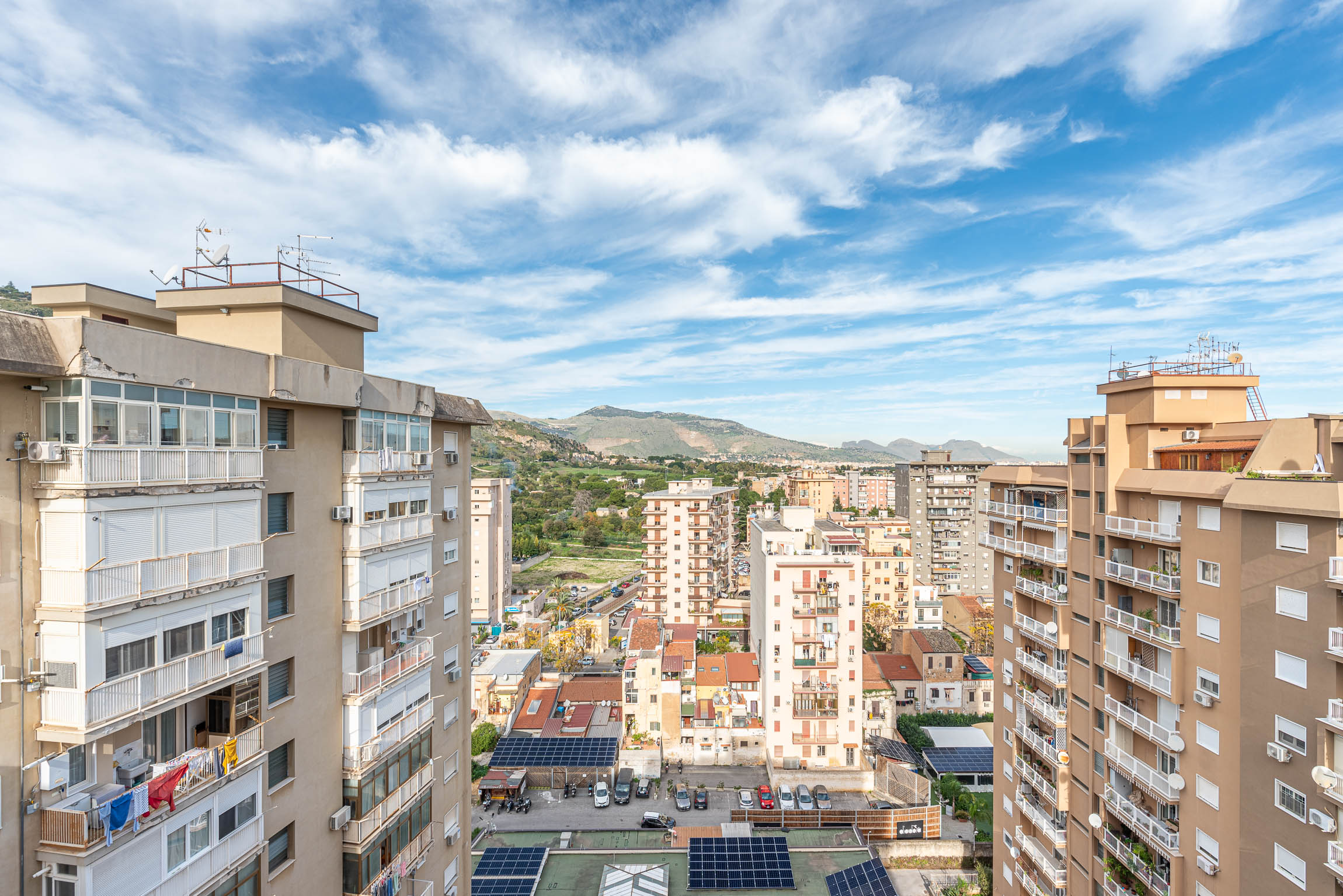 Via Paruta traversa di Corso Calatafimi tratto alto: in residence con posto auto assegnato appartamento di 5 vani 150 mq in vendita composto da salone doppio, 3 camere, cucina abitabile di 20 mq, 2 bagni, balcone e veranda. Si tratta del 13 piano ed ultimo piano di uno stabile senza servizio di portineria, 2 ascensori e cantina di 6 mq. Termoautonomo. Infissi in alluminio vetro-camera. Cucina e bagni da ristrutturare. Libero subito. Panoramico.