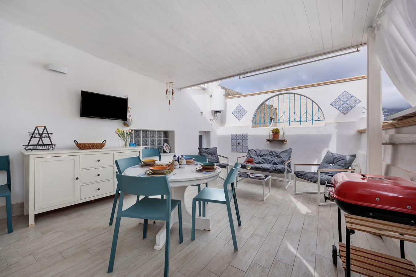Via Palermo a 500 mt da Piazza Duomo: casa indipendente in vendita 122 mq su 2 elevazioni: piano terra ingresso, 3 camere di cui una con bagno privato e cabina armadio, un ulteriore bagno e ripostiglio. 1°piano: cucina abitabile, bagno e 2 terrazzi di 35 mq e 26 mq. Climatizzato. Come da foto l'immobile è totalmente ristrutturato, si presta sia come residenza privata pronta per essere abitata o come forma d'investimento affittandola a turisti, numerosi in ogni periodo dell'anno attratti dal mare e più in generale dalle risorse turistiche di Terrasini. Il fatto che si tratti di una costruzione indipendente poi influisce positivamente nella scelta dell'acquisto di un bene nel vasto panorama immobiliare